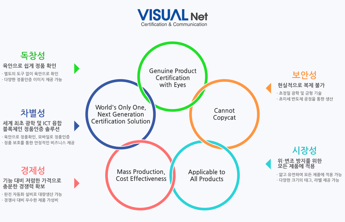 - 세계 최초로 육안으로 정품인증 정보(OK, 정품 등)를 쉽게 확인 가능