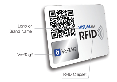 Vc-Tag®PRIME은 세계 최초로 정품을 쉽게 육안으로 확인이 가능한 정품인증 태그인 Vc-Tag®에 바코드, QR코드, RFID가 모두 융합되어 있는 정품인증용 라벨입니다.